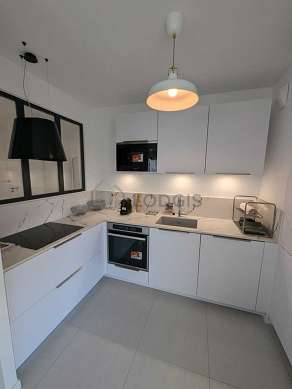 Kochplatte - Kühlschrank - Ofen - Mikrowelle - Abzug - Toaster - Wasserkocher - Kaffeemaschine - Geschirr - soup plates - dessert plates - plates - bowl - casserole dish - cooking knives - bread knife - lid - cutlery - wooden spoon - hot plate - peeler - drying up stand - salad mixer - whisk - ladle - mugs - tin opener - sieve - chopping board - work surface - baking dish - service dish - teatray - stove - bin - grater - Curtains - salad mixer - placemat - ceiling light - coffee cups - cork screw - ventilator - champagne glass - water glass - wine glass