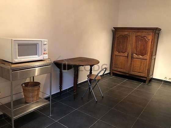 Kochplatte - Kühlschrank - Ofen - Mikrowelle - Abzug - Toaster - Wasserkocher - Kaffeemaschine - Esstisch - Wandschrank - Geschirr - Sitze