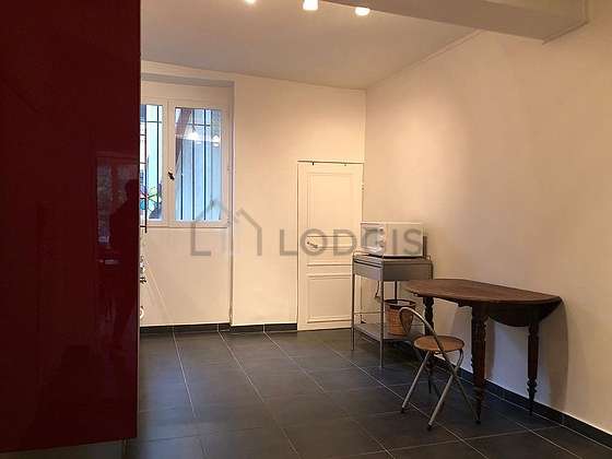 Fenster - Klarer Sicht auf Hof - getrennt - Fliesen