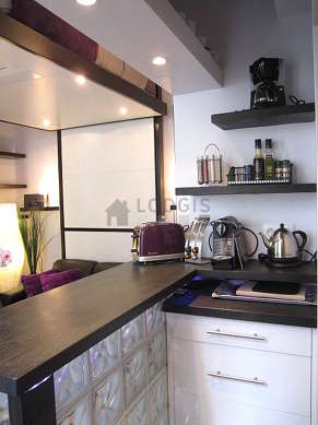 Kochplatte - Kühlschrank - Mikrowelle - Tiefkühlschrank - Abzug - Toaster - Wasserkocher - Kaffeemaschine - Regal - Wandschrank - Geschirr - Hocker - Bar