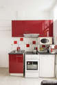 Kochplatte - Kühlschrank - Gefrierschrank - Ofen - Mikrowelle - Abzug - Wasserkocher - Kaffeemaschine - Esstisch - Wandschrank - Geschirr - Sitze