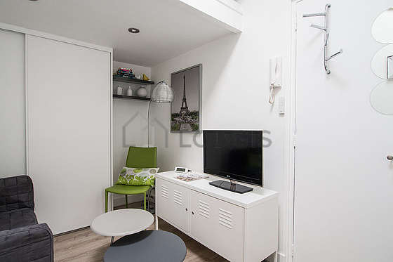 Fernseher - Bettwäsche - Bettwäsche - Sofa - Kleiner Tisch - Kleiderkammer - Regal - Wandschrank - Sitze - Hocker - Bar
