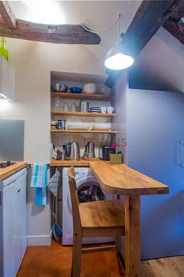 Kochplatte - Kühlschrank - Mikrowelle - Tiefkühlschrank - Abzug - Wasserkocher - Kaffeemaschine - Regal - Wandschrank - Geschirr - Hocker - Bar