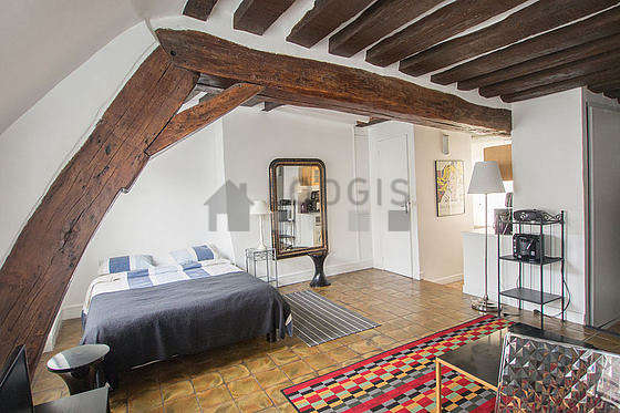 Bettwäsche - Bettwäsche - Sofa - Esstisch - Kleiner Tisch - Wandschrank - Balken - Sitze
