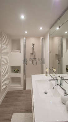 Badezimmer - Regal - Wandschrank - Getrenntes Badezimmer - Föhn - Sink - Kleidertrockner-Heizkörper