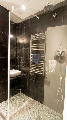 Badezimmer - Regal - Wandschrank - Getrenntes Badezimmer - Föhn - Sink - Kleidertrockner-Heizkörper