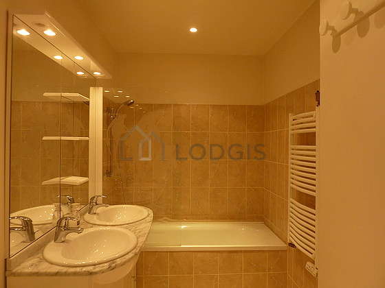 Badezimmer - Wandschrank - Badewanne - Föhn - airer - Sink - Mirror - coat stand - towel rack - bin - Kleidertrockner-Heizkörper - painting - ventilator