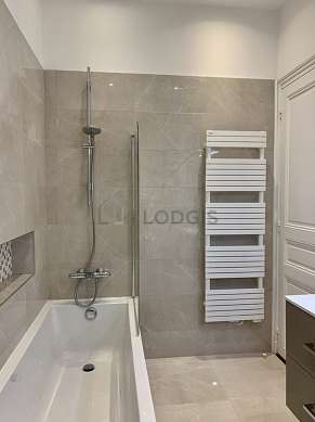 Badezimmer - Kommode - Wandschrank - Badewanne - Föhn - Sink - Mirror - towel rack - bin - Kleidertrockner-Heizkörper