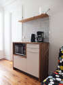 Kochplatte - Kühlschrank - Mikrowelle - Tiefkühlschrank - Abzug - Toaster - Wasserkocher - Kaffeemaschine - Wandschrank - Geschirr - Hocker - Bar