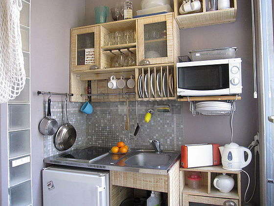 Kochplatte - Kühlschrank - Gefrierschrank - Mikrowelle - Toaster - Wasserkocher - Regal - Wandschrank - Geschirr