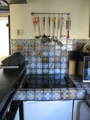 Kochplatte - Kühlschrank - Mikrowelle - Tiefkühlschrank - Esstisch - Buffet - Wandschrank - Geschirr - Sitze