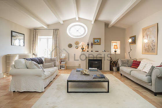 This duplex consists of a living room its windows. This living room is furnished and equipped for a comfortable stay: sofa, dining table, coffee table, desk, 1 chair(s).