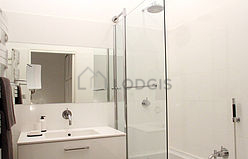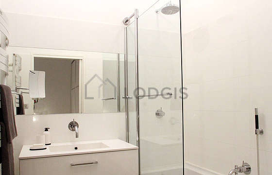 This apartment is equipped with a great bathroom. This bathroom is furnished with all the equipment you need for a comfortable stay: bath towels, storage space, bath tub, hair-dryer, sink, mirror, bin. The toilets are separated from the bathroom and located in an independant room.