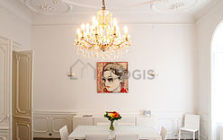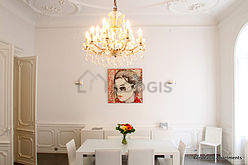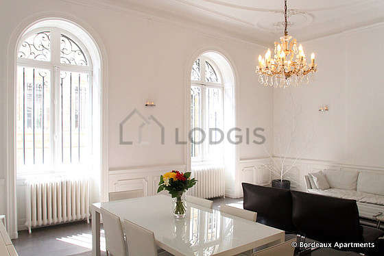 This apartment consists of a fabulous living room with wooden floor and its windows. This very quiet living room is furnished and equipped for a comfortable stay: tv, linen, sofa, 1 armchair(s), dining table, sideboard, 6 chair(s), painting.