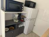 This apartment consists of great kitchen with wooden floor and all the necessary equipment for your daily life: hob, refrigerator, freezer, oven, microwave oven, coffee-maker, cupboard, crockery, bin.