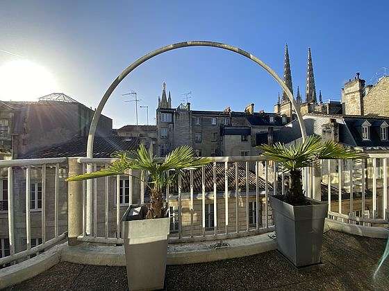 Dans un immeuble de standing sécurisé (Vigik, interphone, ascenseur), cet appartement bénéficie d’une situation exceptionnelle. En plein centre-ville Pey Berland, proche de toutes les commodités (Galerie marchande sous l’immeuble et accès direct au parking public) et du centre historique, il est calme (étage élevé 5/6), sans vis-à-vis avec vue sur la cathédrale, exposé sud, vous pourrez profiter pleinement de l’extérieur avec sa terrasse arborée.