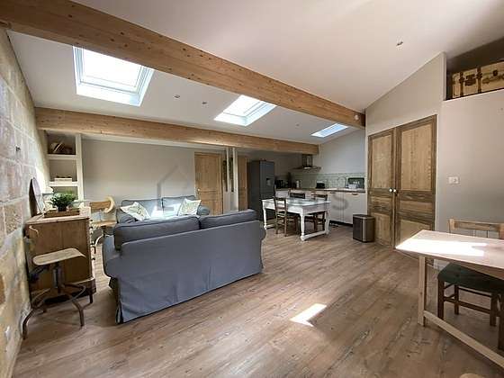 Living roomThis apartment consists of a living room its windows. This living room is furnished and equipped for a comfortable stay.