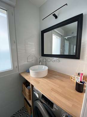 This apartment is equipped with a bathroom. This bathroom is furnished with all the equipment you need for a comfortable stay: shelves, separate shower, sink, towel drying radiator. The toilets are separated from the bathroom and located in an independant room.