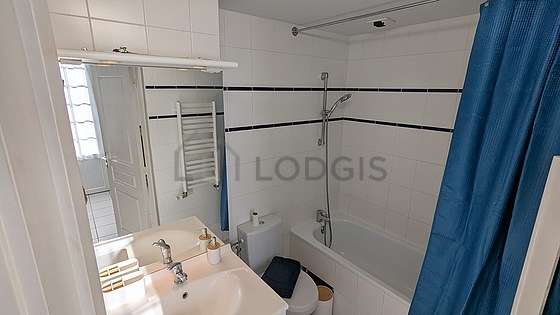 This apartment is equipped with a great bathroom and very bright. This bathroom is furnished with all the equipment you need for a comfortable stay: bath tub, sink. The toilets are separated from the bathroom and located in an independant room.