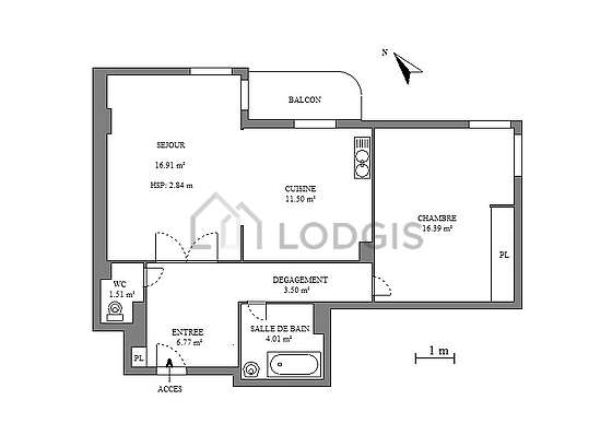 This apartment is equipped with a bathroom. This bathroom is furnished with all the equipment you need for a comfortable stay: bath tub, sink, towel rack, towel drying radiator. The toilets are separated from the bathroom and located in an independant room.