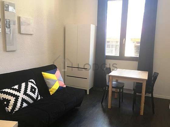 Living roomThis apartment consists of a living room its windows. This living room is furnished and equipped for a comfortable stay: dining table, shelves, closet, 1 chair(s)1 sofabed(s) of 140cm.