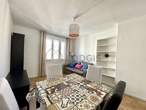 Living roomThis apartment consists of a living room its double-glazed windows. This living room is furnished and equipped for a comfortable stay: sofa, dining table, shelves, storage space, cupboard, 1 chair(s).