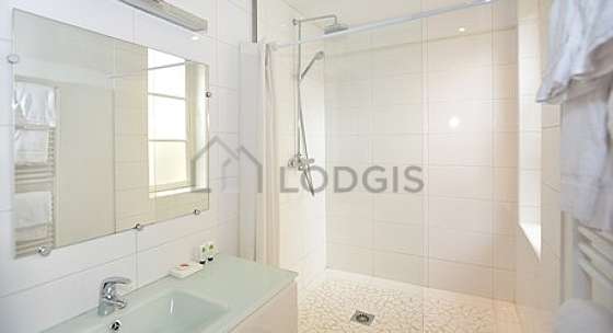 This apartment is equipped with a bathroom. This bathroom is furnished with all the equipment you need for a comfortable stay: cupboard, separate shower, sink. The toilets are separated from the bathroom and located in an independant room.