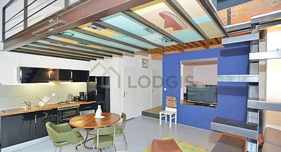 Thanks to its lovely height-under-ceiling, amezzanine was set up in this apartment , thus offering you an extra room supplementary equipped with desk, 1 chair(s).