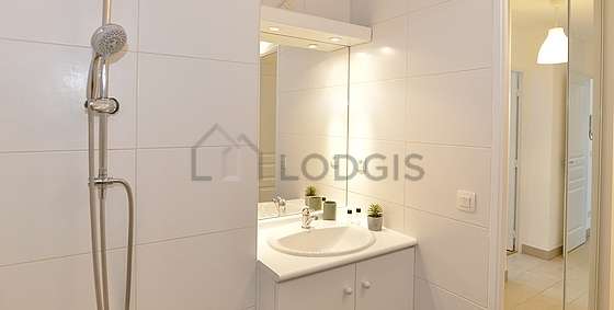 This apartment is equipped with a bathroom. This bathroom is furnished with all the equipment you need for a comfortable stay: cupboard, bath tub, sink, towel drying radiator. The toilets are separated from the bathroom and located in an independant room.