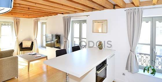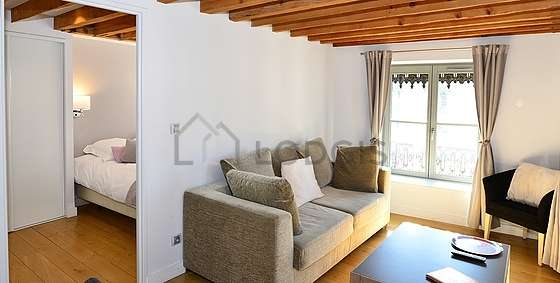 Living roomThis apartment consists of a living room its double-glazed windows. This living room is furnished and equipped for a comfortable stay: tv, sofa, 1 armchair(s), coffee table.