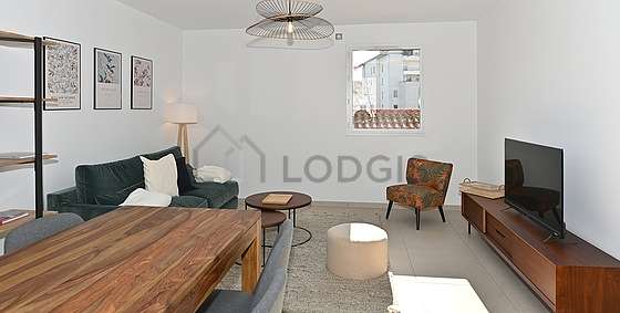 This apartment consists of a living room its double-glazed windows. This living room is furnished and equipped for a comfortable stay: tv, sofa, 1 armchair(s), dining table, coffee table, bookcase, tv stand, carpet.