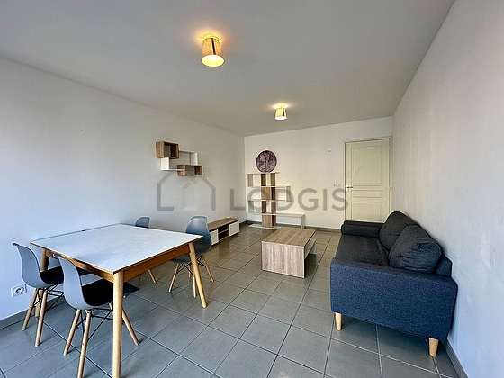 This duplex consists of a living room its double-glazed windows. This living room is furnished and equipped for a comfortable stay: sofa, dining table, coffee table, shelves, 1 chair(s).