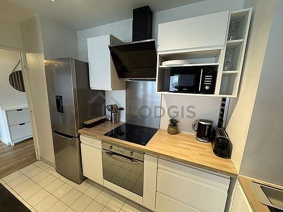This apartment consists of kitchen and all the necessary equipment for your daily life: hob, refrigerator, freezer, oven, combined microwave oven, extractor hood, toaster, kettle, coffee-maker, crockery, stool, bar.