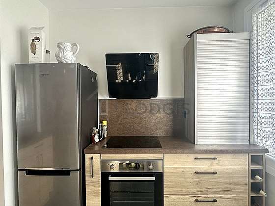 This apartment consists of kitchen with tile floor and all the necessary equipment for your daily life: hob, refrigerator, freezer, oven, microwave oven, freezer, extractor hood, coffee-maker, cupboard, crockery, stool, bar, casserole dish, lid, cutlery, bin.