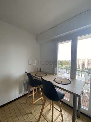 This apartment consists of a wonderful living room with wooden floor and its double-glazed windows. This very quiet living room is furnished and equipped for a comfortable stay: coffee table1 sofabed(s) of 150cm.
