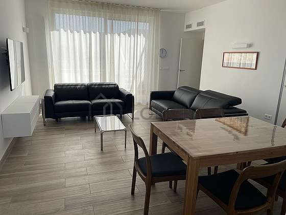 This apartment consists of a living room with wooden floor and its windows. This living room is furnished and equipped for a comfortable stay: sofa, dining table, 1 chair(s).