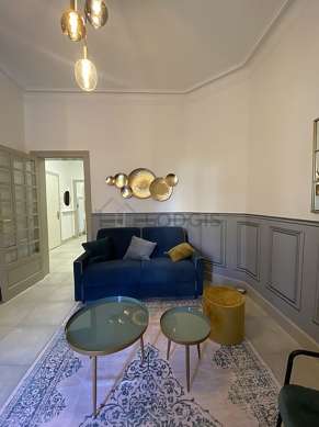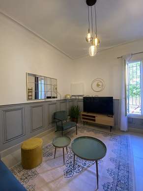 Living roomThis apartment consists of a living room with wooden floor and its windows and view on road. This living room is furnished and equipped for a comfortable stay: sofa, dining table, coffee table, desk, 1 chair(s)1 sofabed(s) of 140cm.