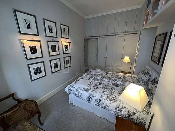 This apartment consists of a wonderful living room with wooden floor and its double-glazed windows and view on courtyard. This very quiet living room is furnished and equipped for a comfortable stay: sofa, 2 armchair(s), dining table, coffee table, bookcase, closet, cupboard, 6 chair(s).