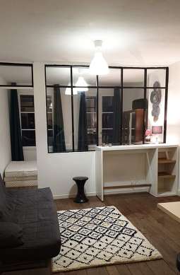 This apartment consists of a living room with wooden floor and its double-glazed windows and view on courtyard. This quiet living room is furnished and equipped for a comfortable stay: tv, linen, quilt, dining table, coffee table, shelves, closet, storage space, 2 chair(s), bedside table1 sofabed(s) of 140cm.