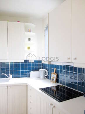 This apartment consists of beautiful kitchen with wooden floor and all the essential equipment for your daily life: hob, refrigerator, freezer, oven, microwave oven, extractor hood, toaster, kettle, coffee-maker, shelves, cupboard, crockery.