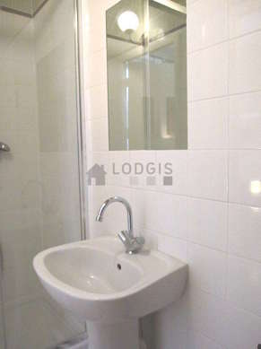 This apartment consists of a attractive living room with wooden floor and its double-glazed windows and view on courtyard. This very quiet living room is furnished and equipped for a comfortable stay: tv, linen, quilt, dining table, coffee table, shelves, closet, storage space, 3 chair(s)1 sofabed(s) of 140cm.