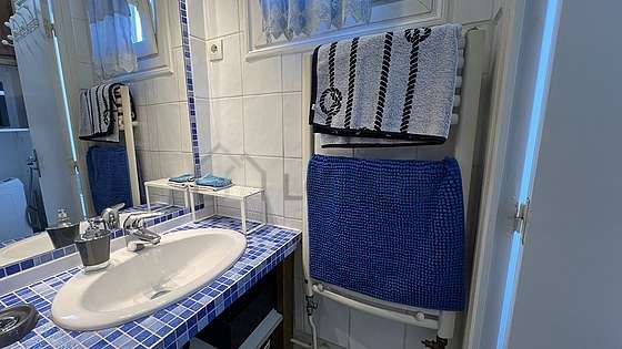 This apartment is equipped with a pleasant bathroom and bright with windows. This bathroom is furnished with all the equipment you need for a comfortable stay: bath towels, shelves, separate shower, hair-dryer, towel drying radiator. The toilets are separated from the bathroom and located in an independant room.