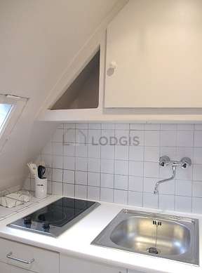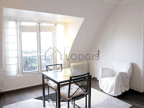 This apartment consists of a pleasant living room with wooden floor and its double-glazed windows and view on road. This very quiet living room is furnished and equipped for a comfortable stay: tv, linen, quilt, 1 armchair(s), dining table, wardrobe, shelves, cupboard, 2 chair(s)1 sofabed(s) of 140cm.