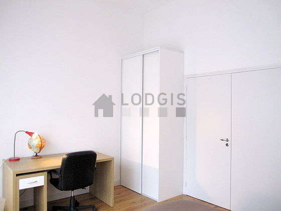 This apartment consists of a charming living room with wooden floor and its double-glazed windows and view on courtyard. This very quiet living room is furnished and equipped for a comfortable stay: tv, sofa, 3 armchair(s), coffee table, bookcase, sideboard.