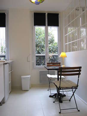 This apartment consists of a pleasant living room with wooden floor and its double-glazed windows and view on courtyard. This quiet living room is furnished and equipped for a comfortable stay: tv, linen, quilt, desk, wardrobe, shelves, 1 chair(s)1 bed(s) of 140cm.