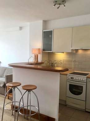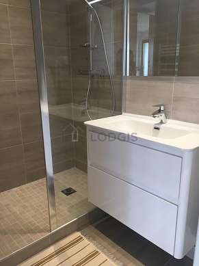 This apartment is equipped with a bathroom. This bathroom is furnished with all the equipment you need for a comfortable stay: bath towels, shelves, cupboard, bath tub, hair-dryer. The toilets are separated from the bathroom and located in an independant room.