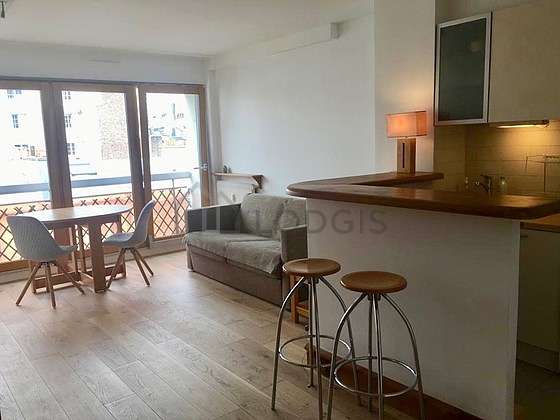 This apartment consists of a attractive living room with coco floor and its windows with balcony and view on courtyard. This very quiet living room is furnished and equipped for a comfortable stay: tv, linen, quilt, coffee table, desk, wardrobe, shelves, cupboard, 1 chair(s), bedside table1 sofabed(s) of 140cm.