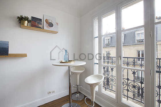 This apartment consists of a attractive living room with wooden floor and its double-glazed windows. This quiet living room is furnished and equipped for a comfortable stay: tv, linen, quilt, coffee table, wardrobe, shelves, cupboard, bar1 sofabed(s) of 120cm.