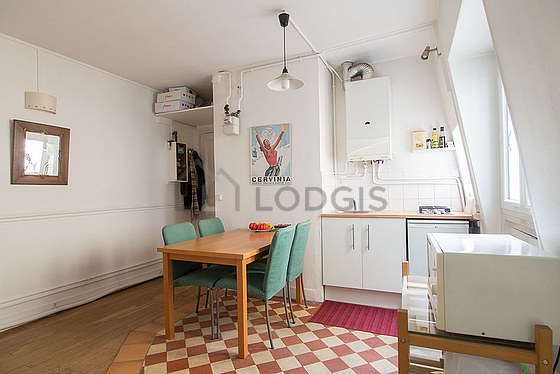 This apartment consists of a pleasant living room with wooden floor and its windows and view on courtyard. This quiet living room is furnished and equipped for a comfortable stay: tv, linen, quilt, 2 armchair(s), cupboard1 sofabed(s) of 140cm.