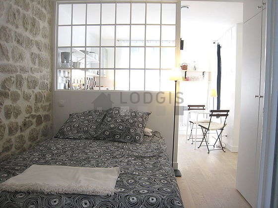 This apartment consists of a charming living room with wooden floor and its double-glazed windows and view on courtyard. This quiet living room is furnished and equipped for a comfortable stay: tv, linen, quilt, 1 armchair(s), desk, wardrobe, cupboard1 bed(s) of 140cm.